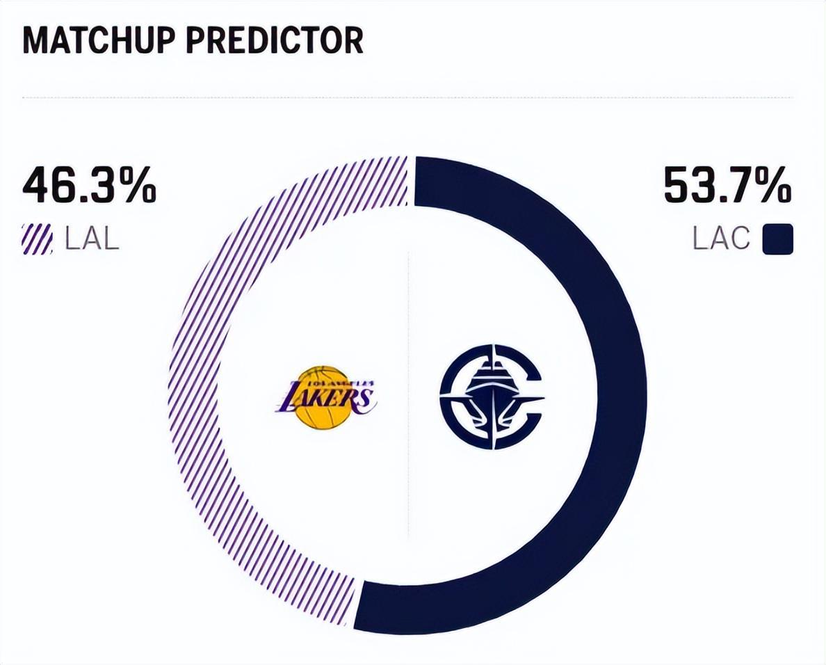 赛前,美媒ESPN对本场比赛进行了胜率预测,湖人胜率仅有46.3% ,稍占劣势,快船队胜率则为53.7% 。